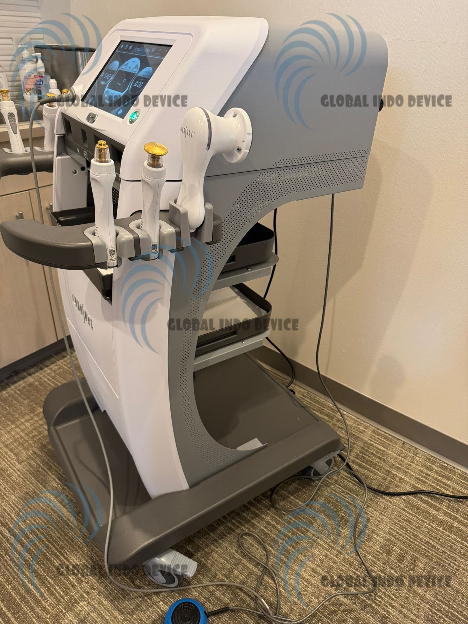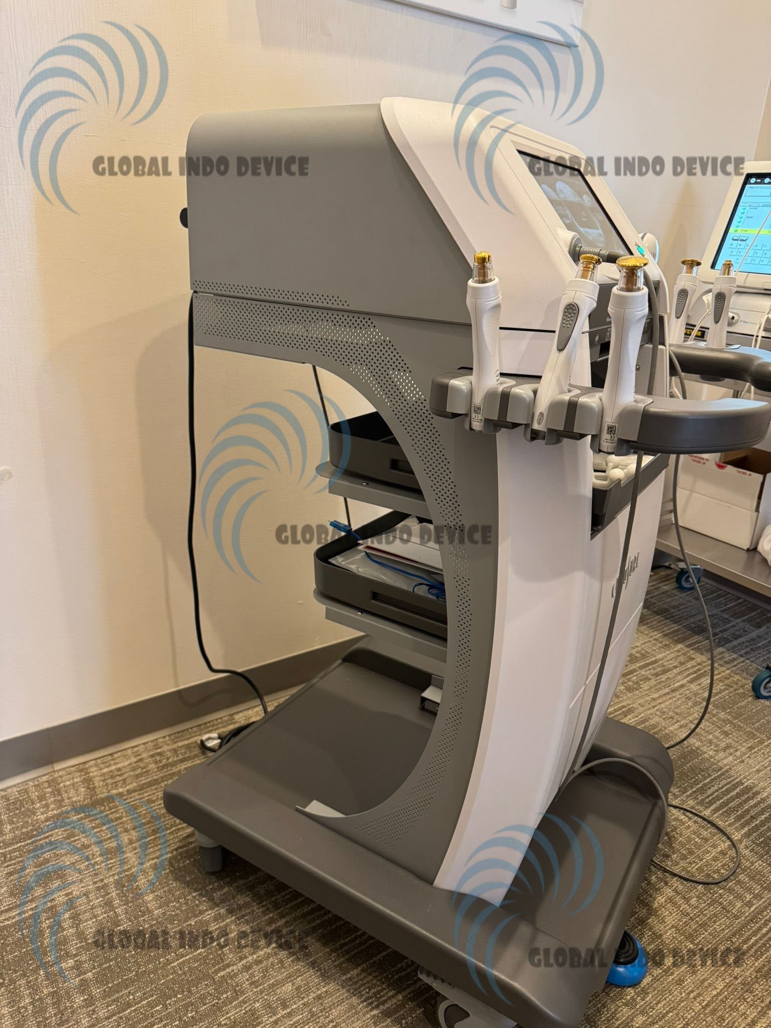 Multiple applicators designed for facial and body areas enable tailored treatment protocols.