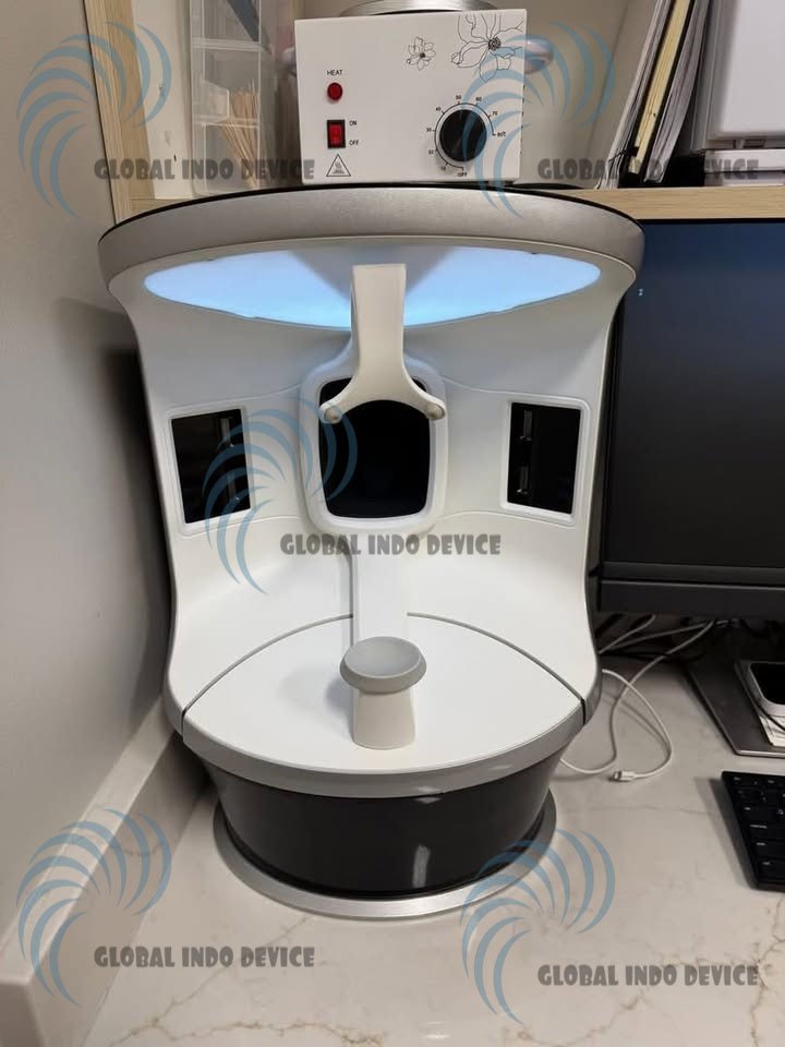The VISIA 7th Generation uses multi spectral imaging and controlled lighting to capture detailed facial images
