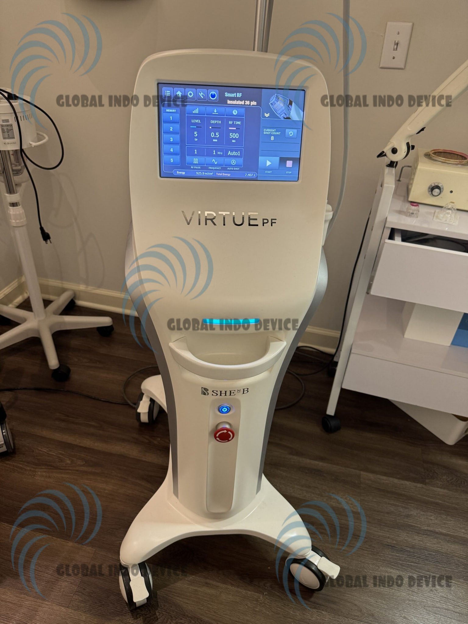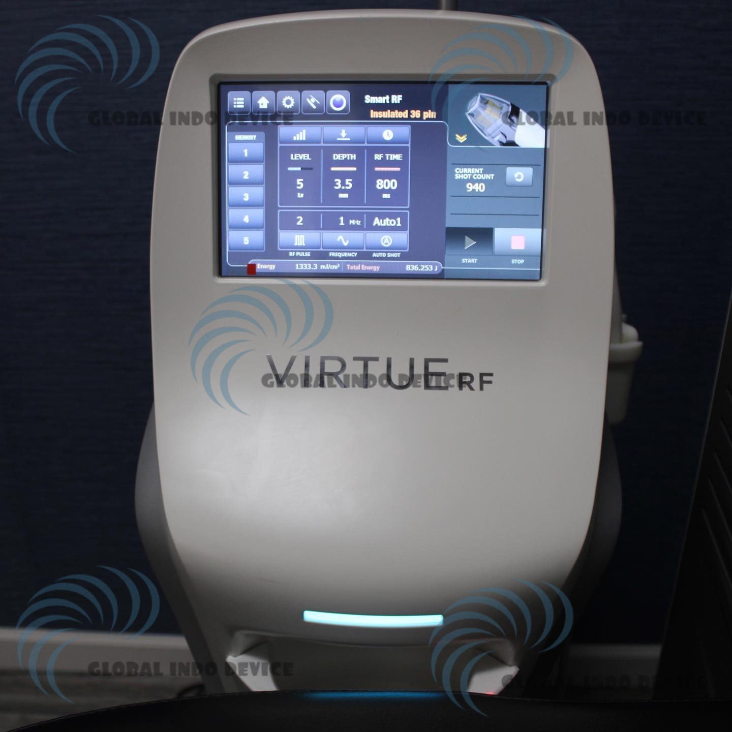 Virtue RF is a professional aesthetic platform that uses multiple RF delivery channels through specialized microneedle tips. This configuration allows practitioners to target different skin layers while maintaining precise energy control.